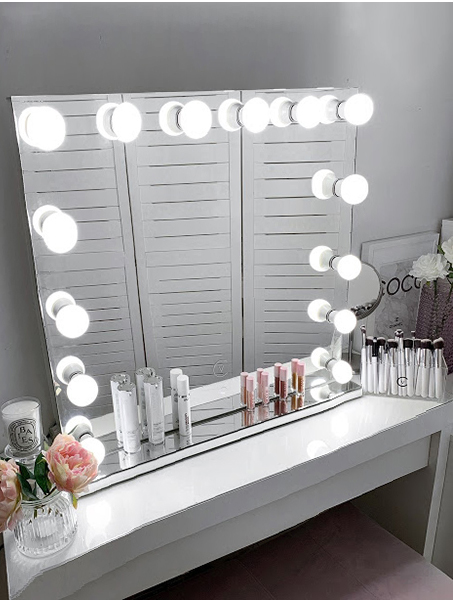 آینه گریم قابل حمل: آینه های قابل حمل در سال های اخیر و با پیشرفت تکنولوژی ساخته شده اند که برخلاف مدل های قدیمی، از لامپ های ال ای دی و کم مصرف بدون برآمدگی استفاده می کنند.